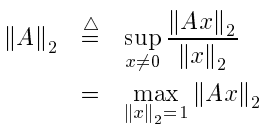 Linear operator의 크기 ||A||를 표현하는 수단. ||Ax|| <= c||x||에서 상수 c와 가까운 ||A||를 찾는 것이 목표이다. Spectral norm (induced l2-norm)은 아래와 같이 정의된다.